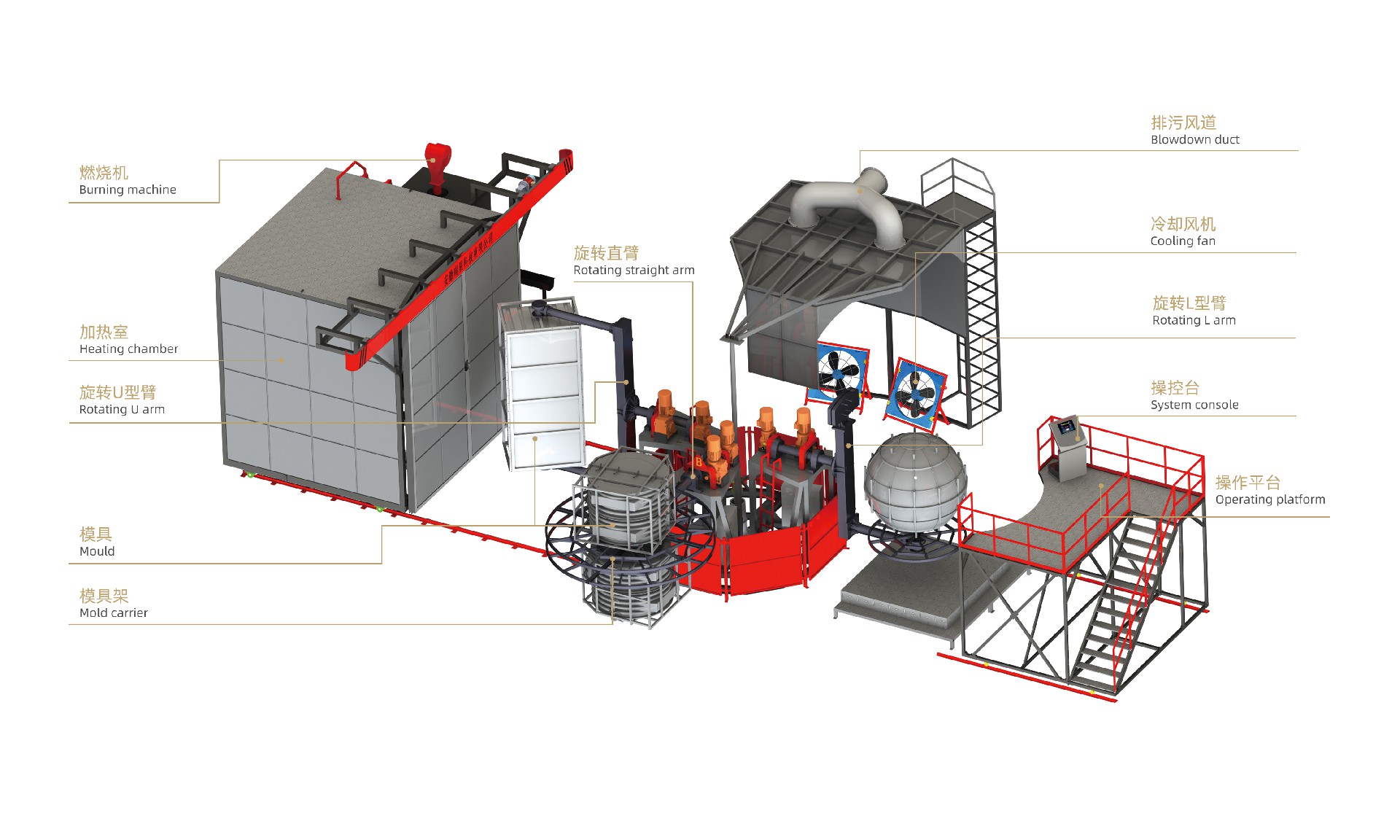 tower, a rotating arm, an automatic control system, a moving heating chamber,